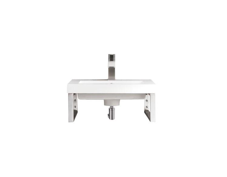 Take your bathroom from basic to beautifully minimalistic with the Boston by James Martin Vanities. This trendy floating console sink has clean lines and a bright white finish, while the open design of the frame makes the room appear more spacious and inviting. This elegant floating console sink will coordinate with a wide variety of different decors. While the architectural details in the design grant you a modern stylized composition.