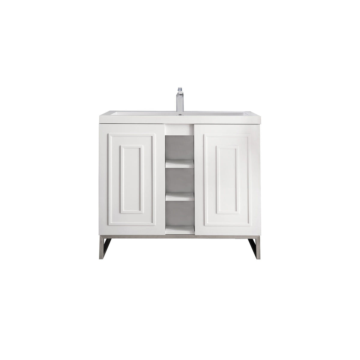 39.5" Alicante' Single Vanity Cabinet, Glossy White w/ Brushed Nickel