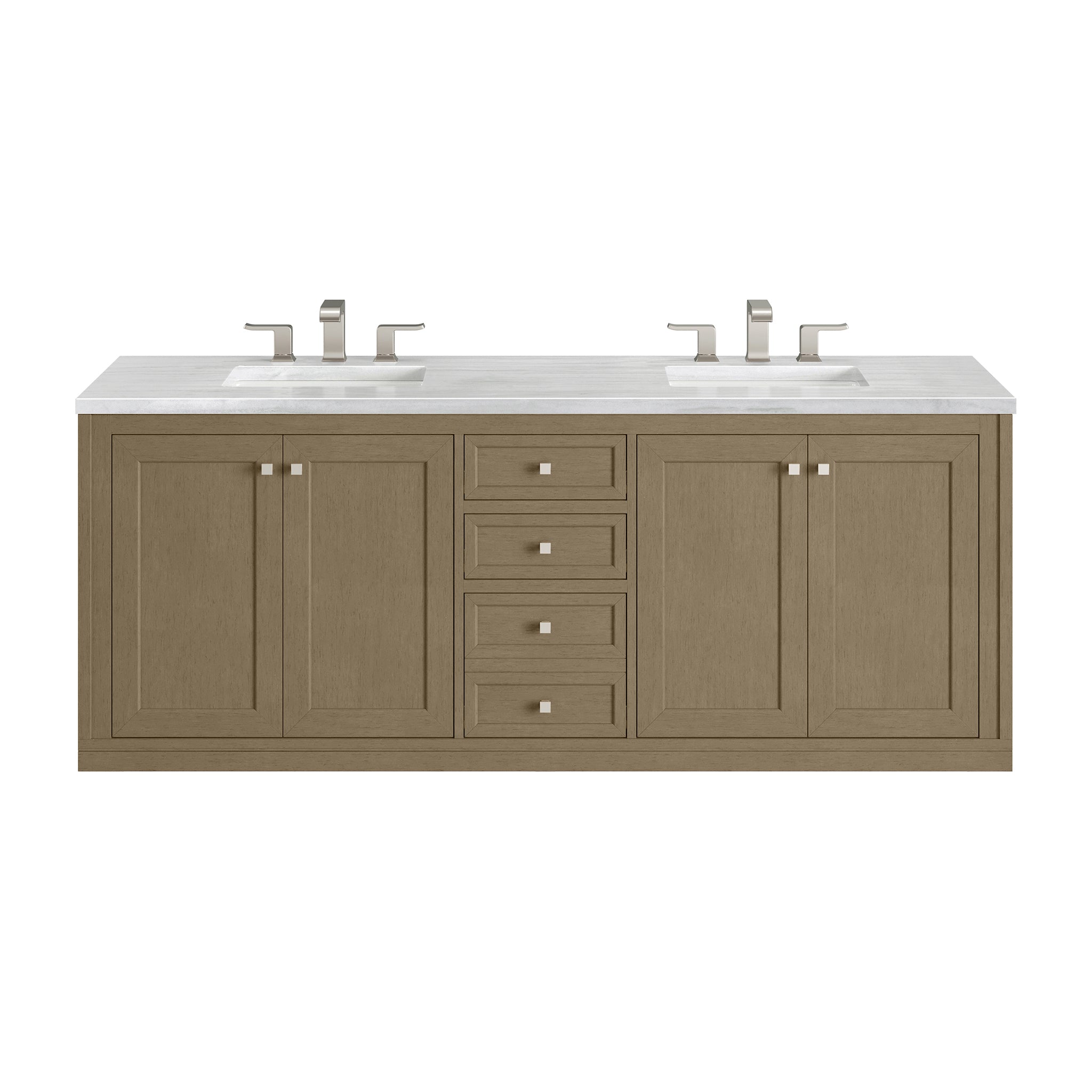 72" Chicago Double Vanity, Walnut Whisper with Arctic Fall top