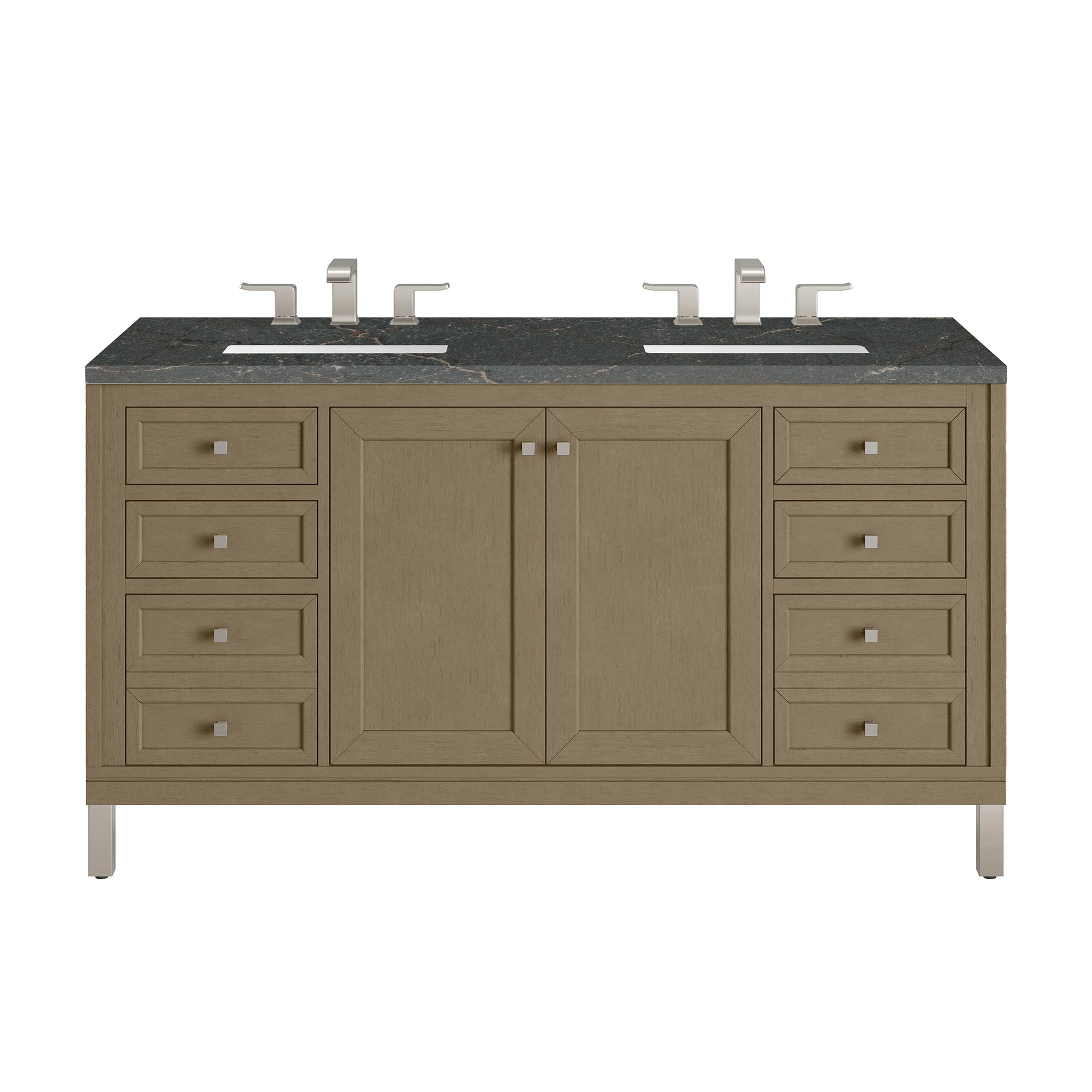 60" Chicago Double Vanity, Walnut Whisper with Parisien Bleu Top