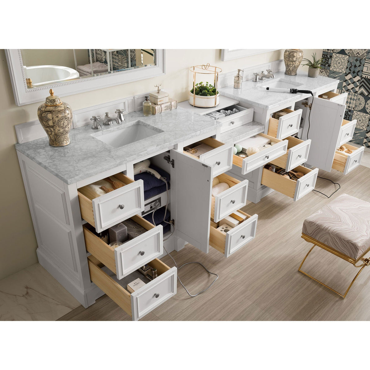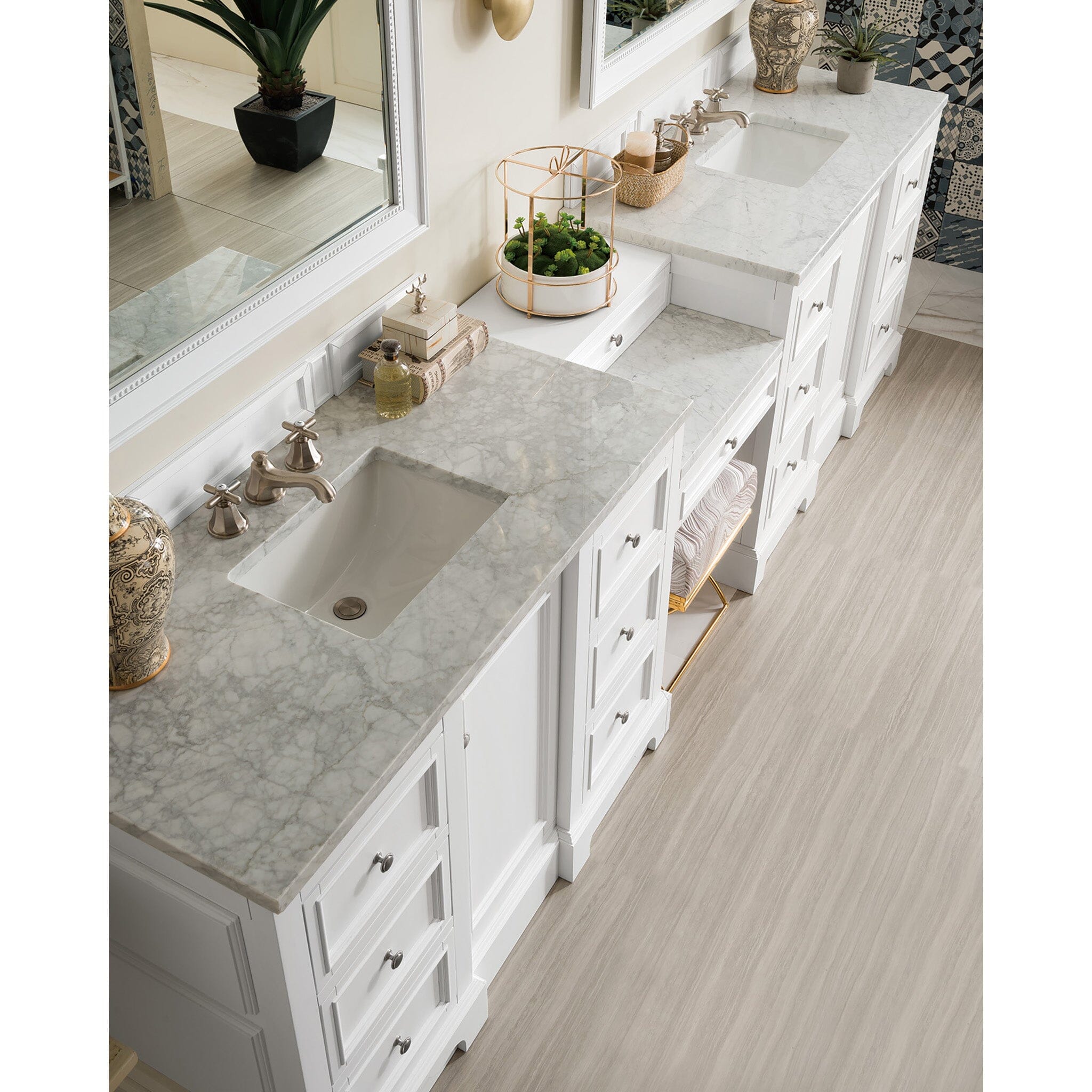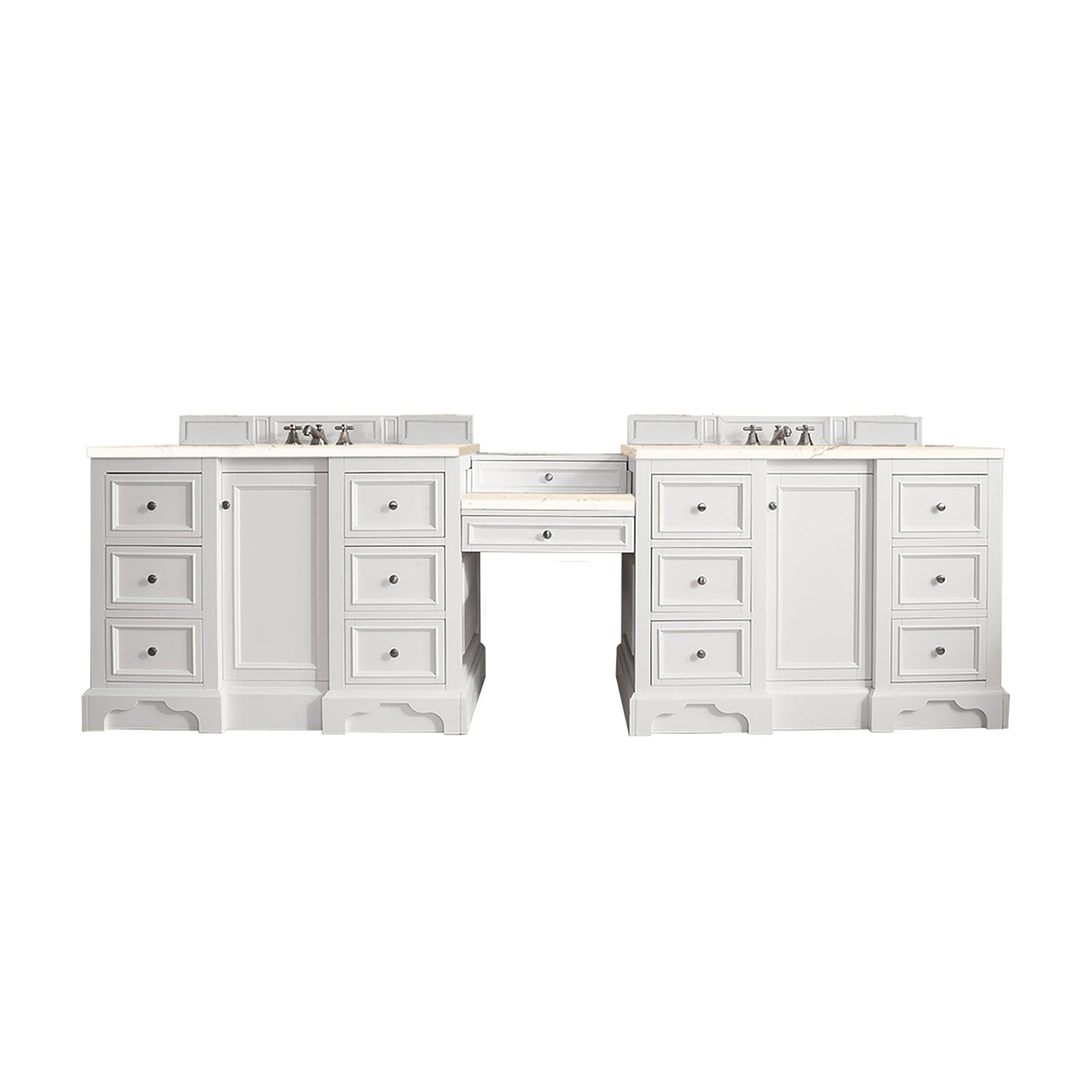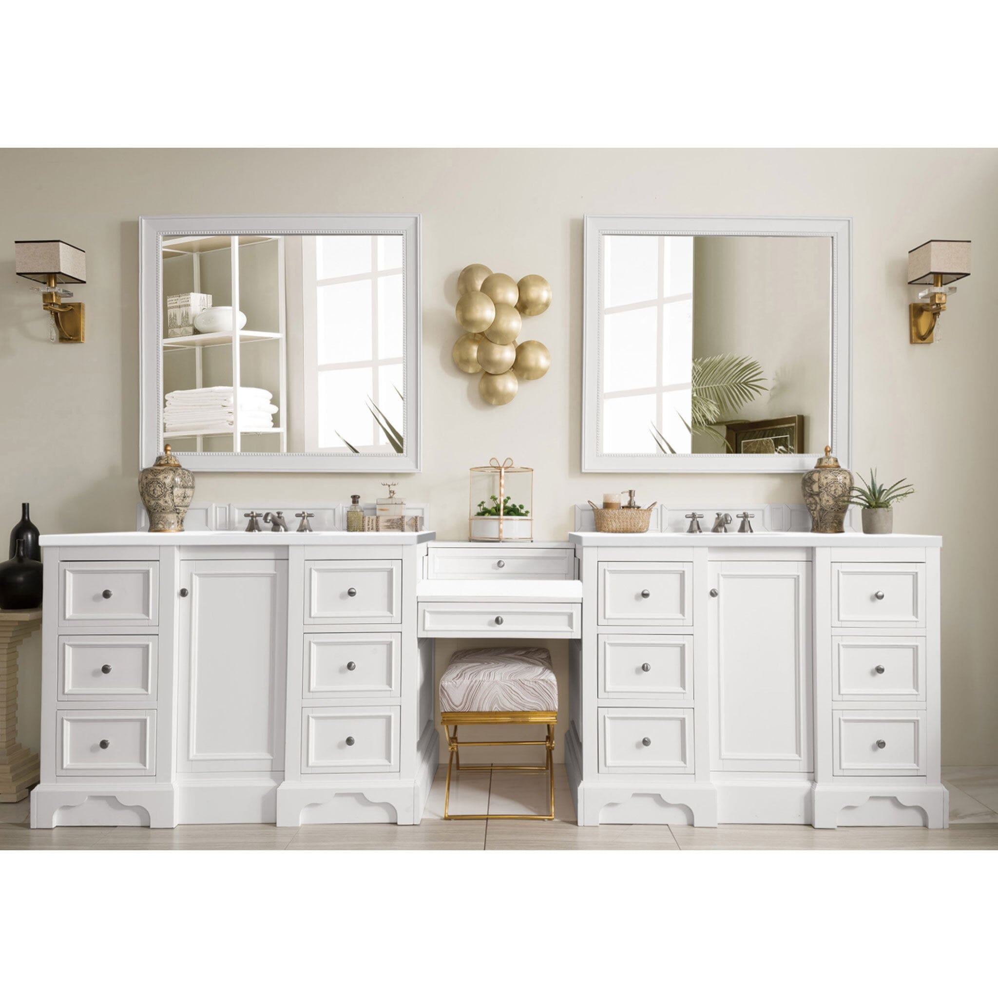 118" De Soto Double Bathroom Vanity with Makeup Counter, Bright White