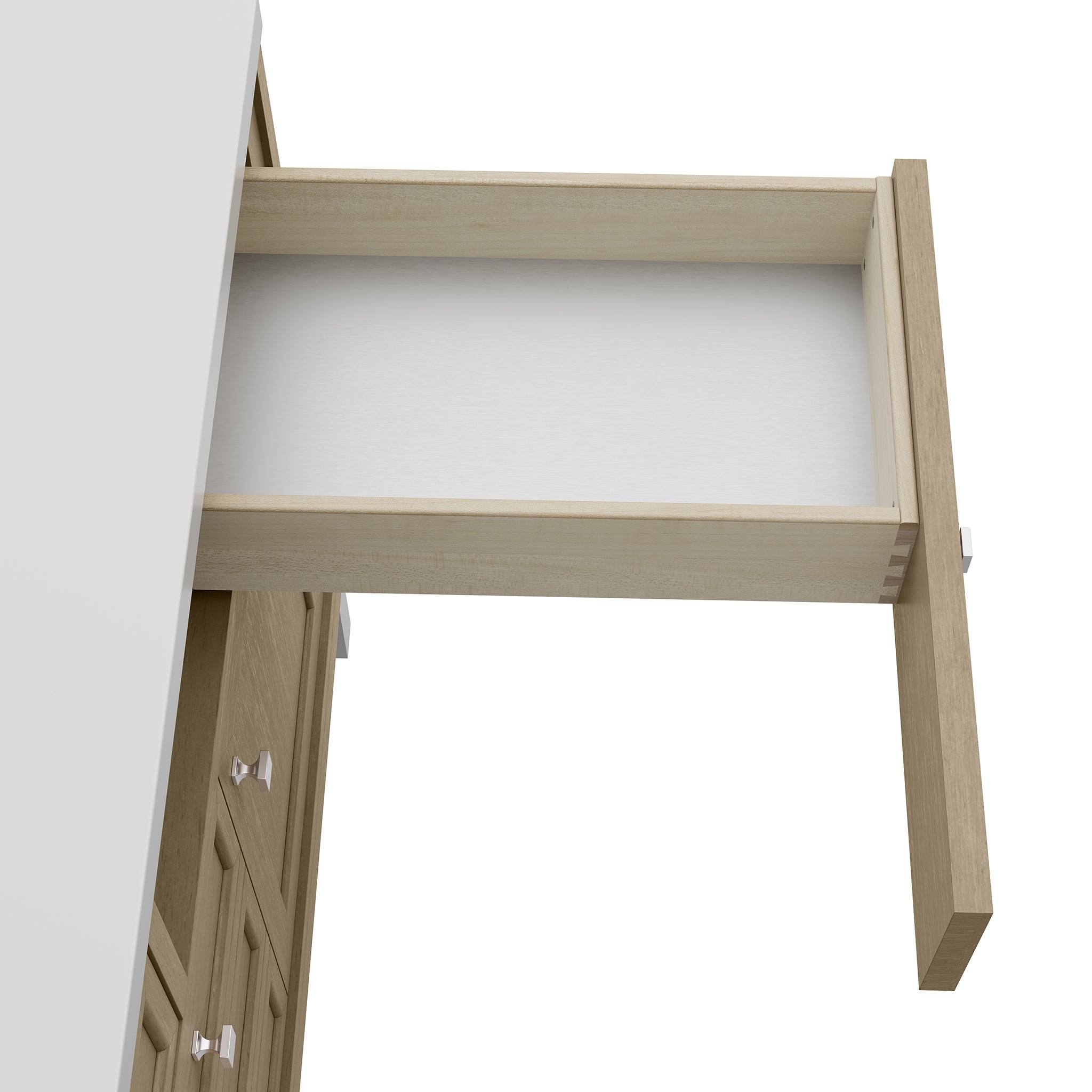 • Drawers lined with our signature brushed aluminum laminate for easy cleaning