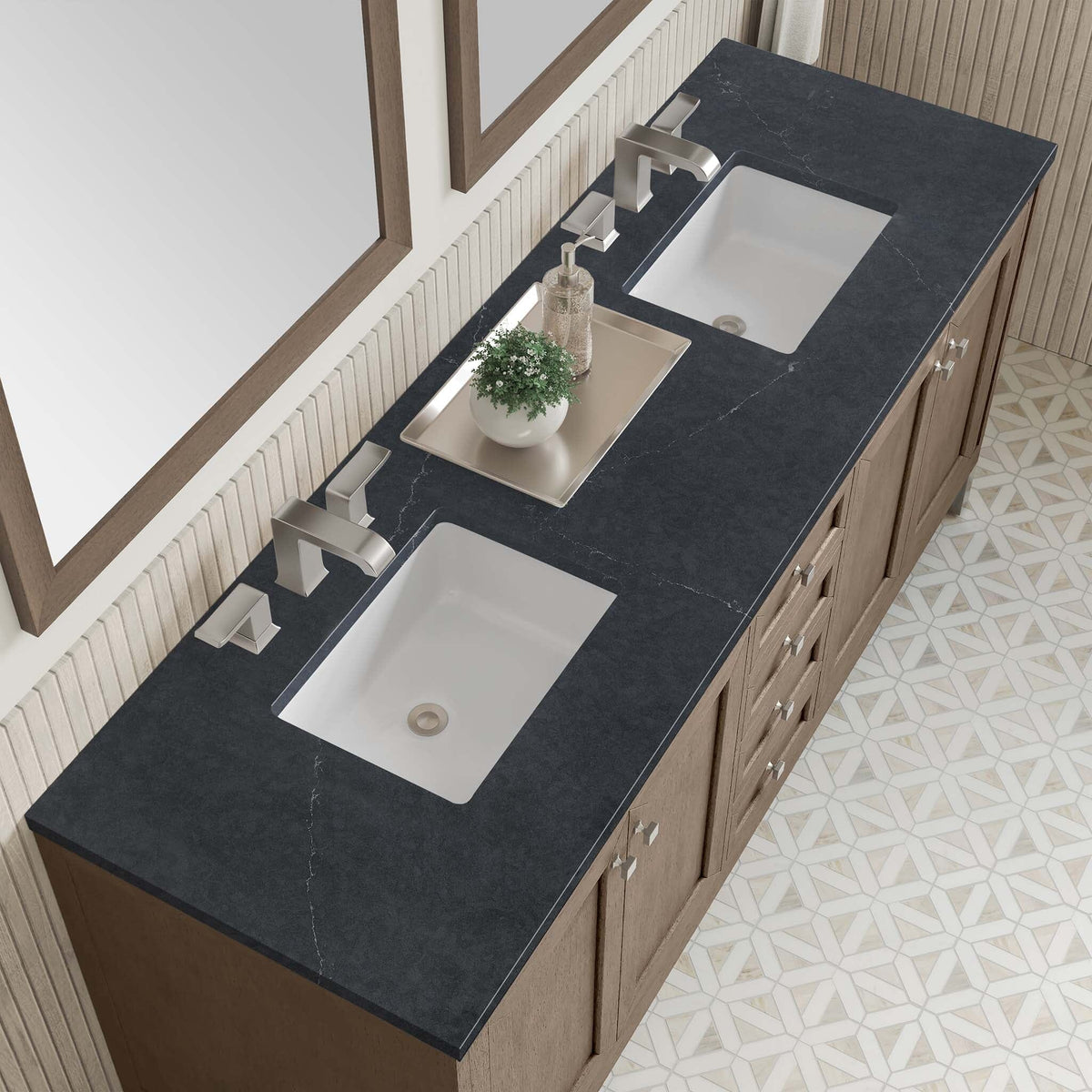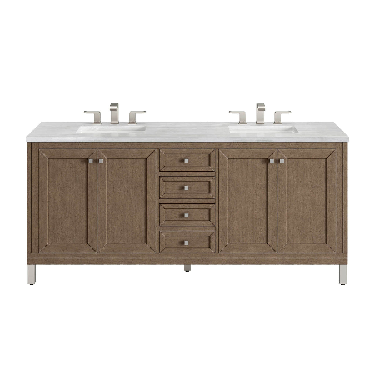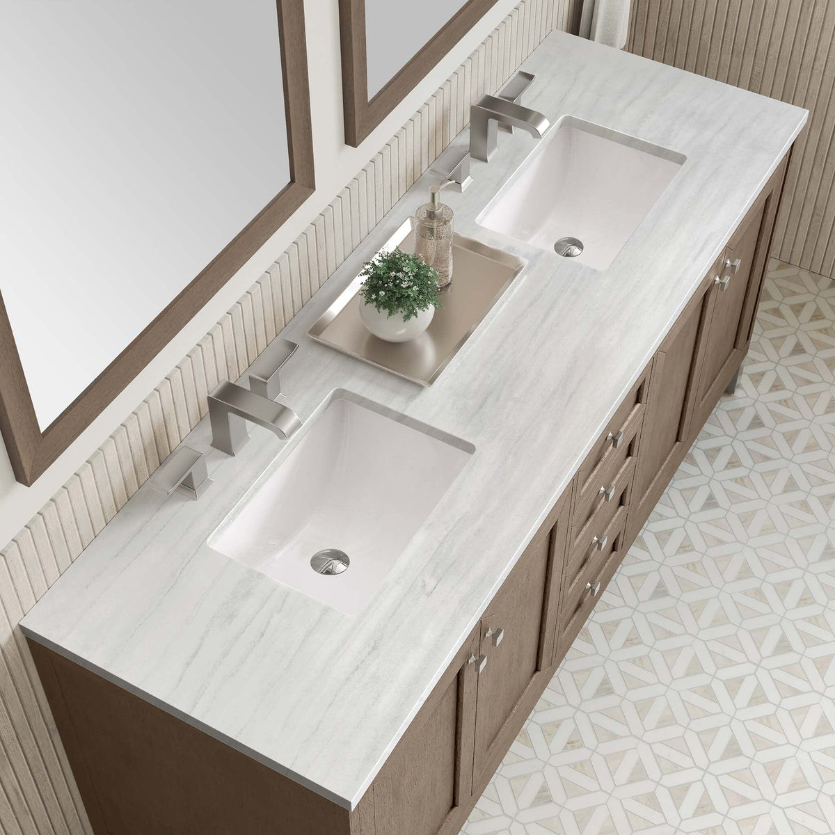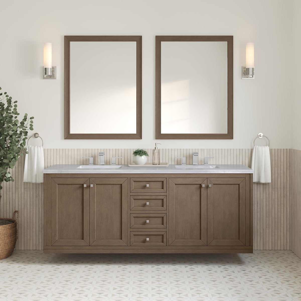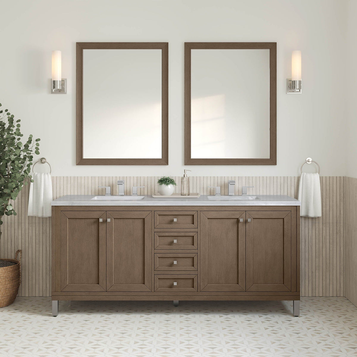 72" Chicago Double Bathroom Vanity, Whitewashed Walnut