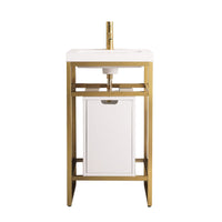 20" Boston Single Sink Console, Radiant Gold w/ Glossy White Storage Cabinet, White Glossy Resin Countertop