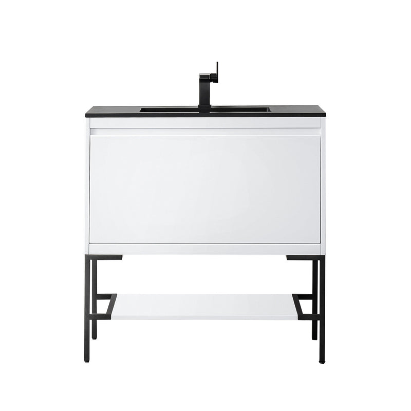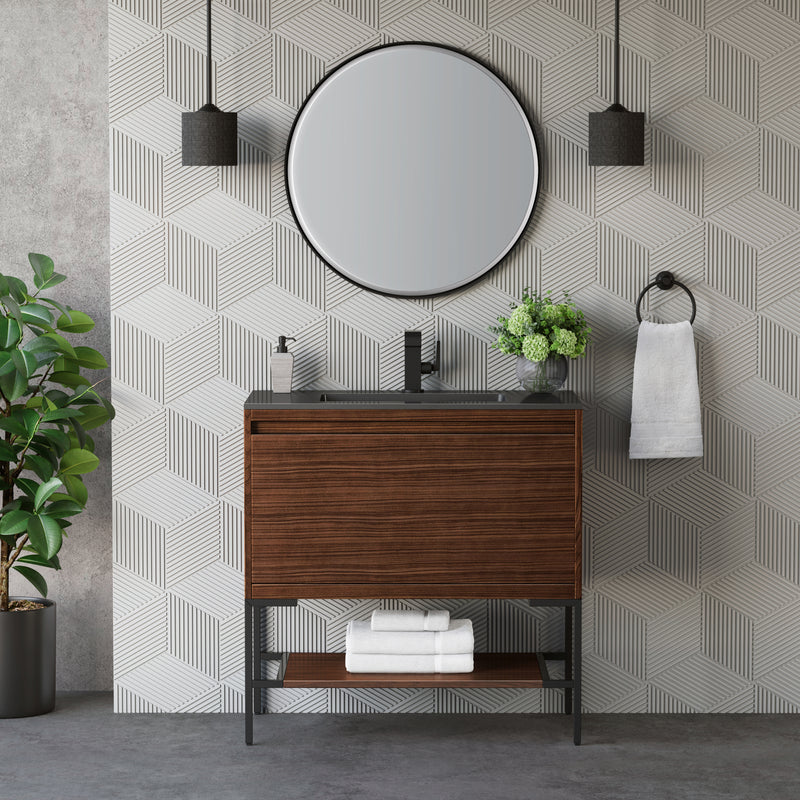 - 35.4" Mantova Single Bathroom Vanity: Featuring clean and modern styling, this 35.4” vanity is equipped with two interior drawers, an open lower shelf, and a bamboo drawer organizer, which combine to provide ample storage.