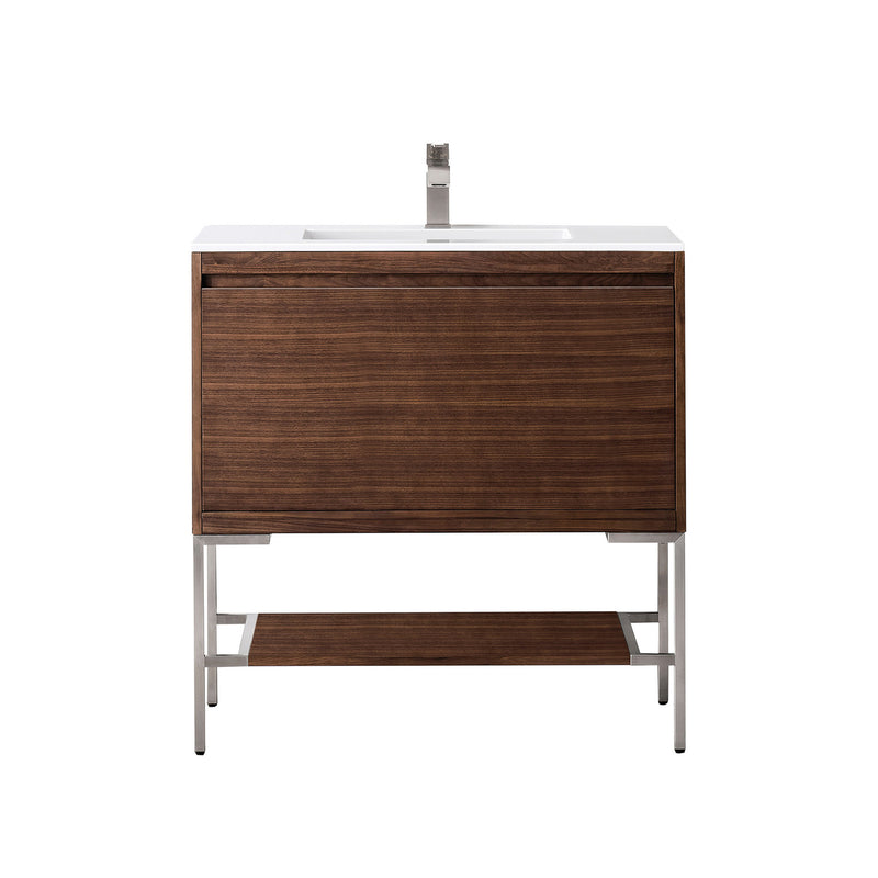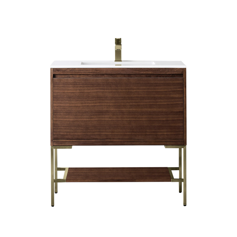 - 31.5" Mantova Single Bathroom Vanity: The piece is finished inside and out for a polished look and has a lower, open storage shelf and two interior drawers lined with premium laminate.
