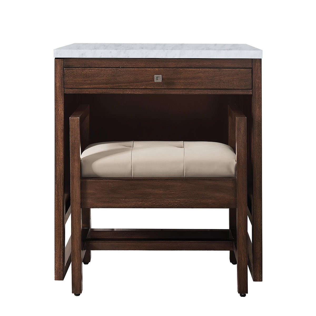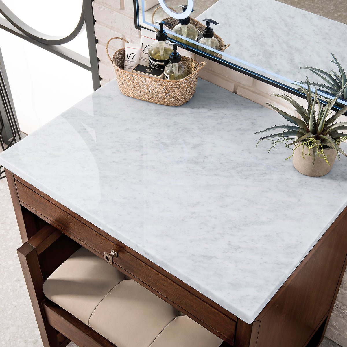 30" Athens Makeup/Countertop Unit, Mid-Century Acacia w/ Carrara Marble Top