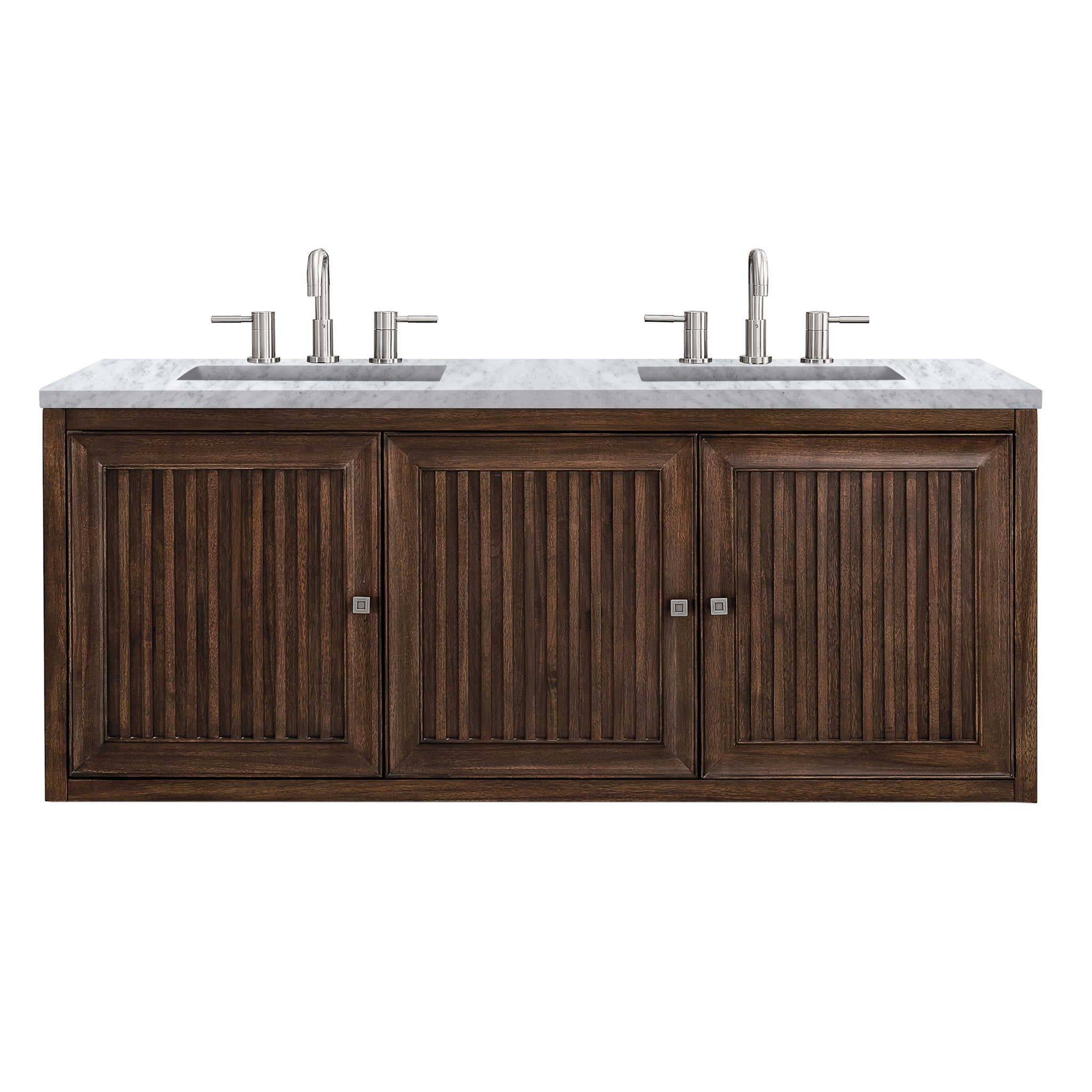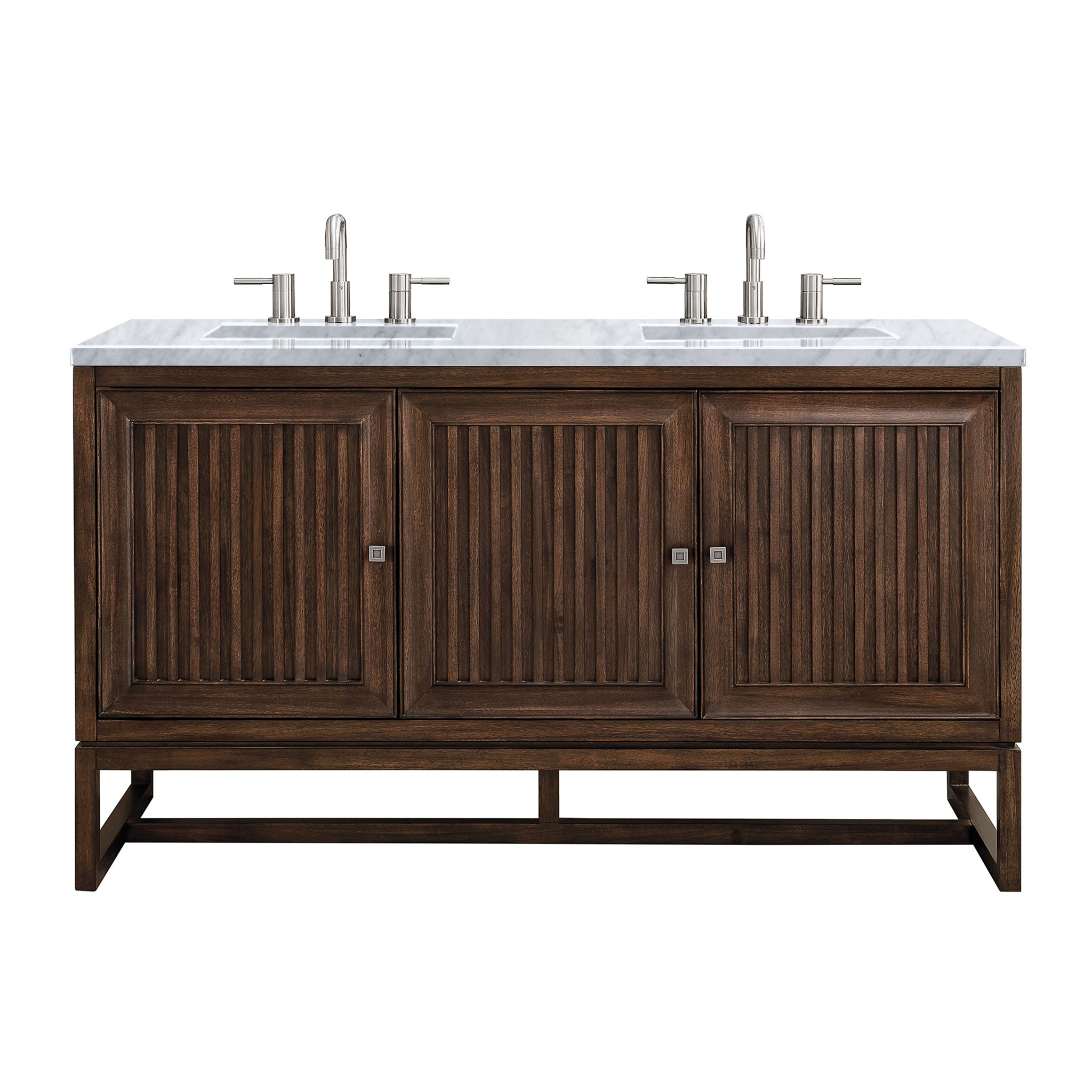 60" Athens Double Bathroom Vanity, Mid-Century Acacia w/ Carrara Marble Top