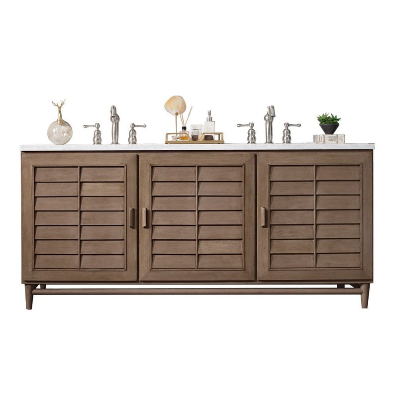 Portland's pleasing proportions and modern lines give a refined look influenced by the American mid-century design aesthetic, featuring hidden storage and casual wood handles.