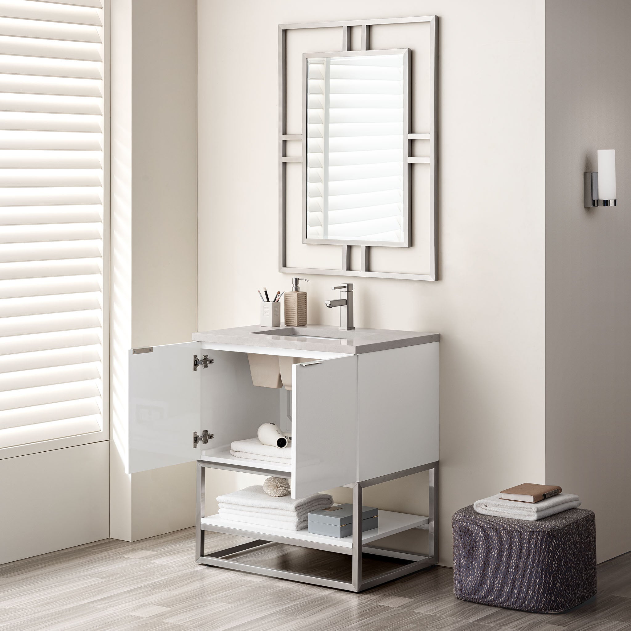 30" Brenlyn Single Vanity in Glossy White with Pietra Grey Quartz Top