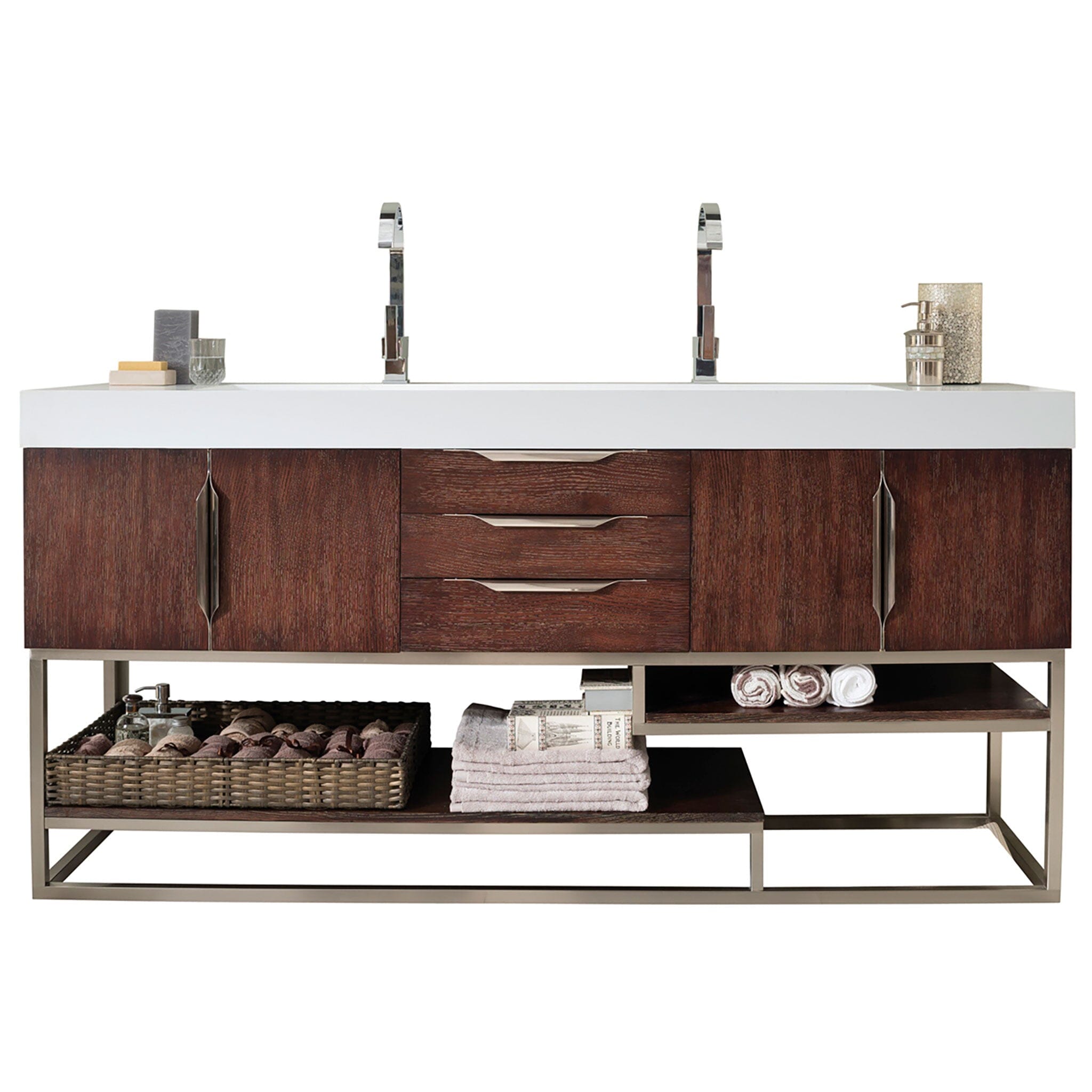 This cabinet features a stainless steel base with a Brushed Nickel finish or