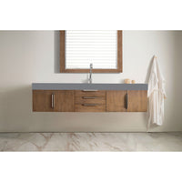 72" Columbia Floating Single Bathroom Vanity, Latte Oak and Glossy White Composite Stone Top