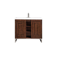 39.5" Alicante' Single Vanity Cabinet, Mid Century Acacia w/ Brushed Nickel Base