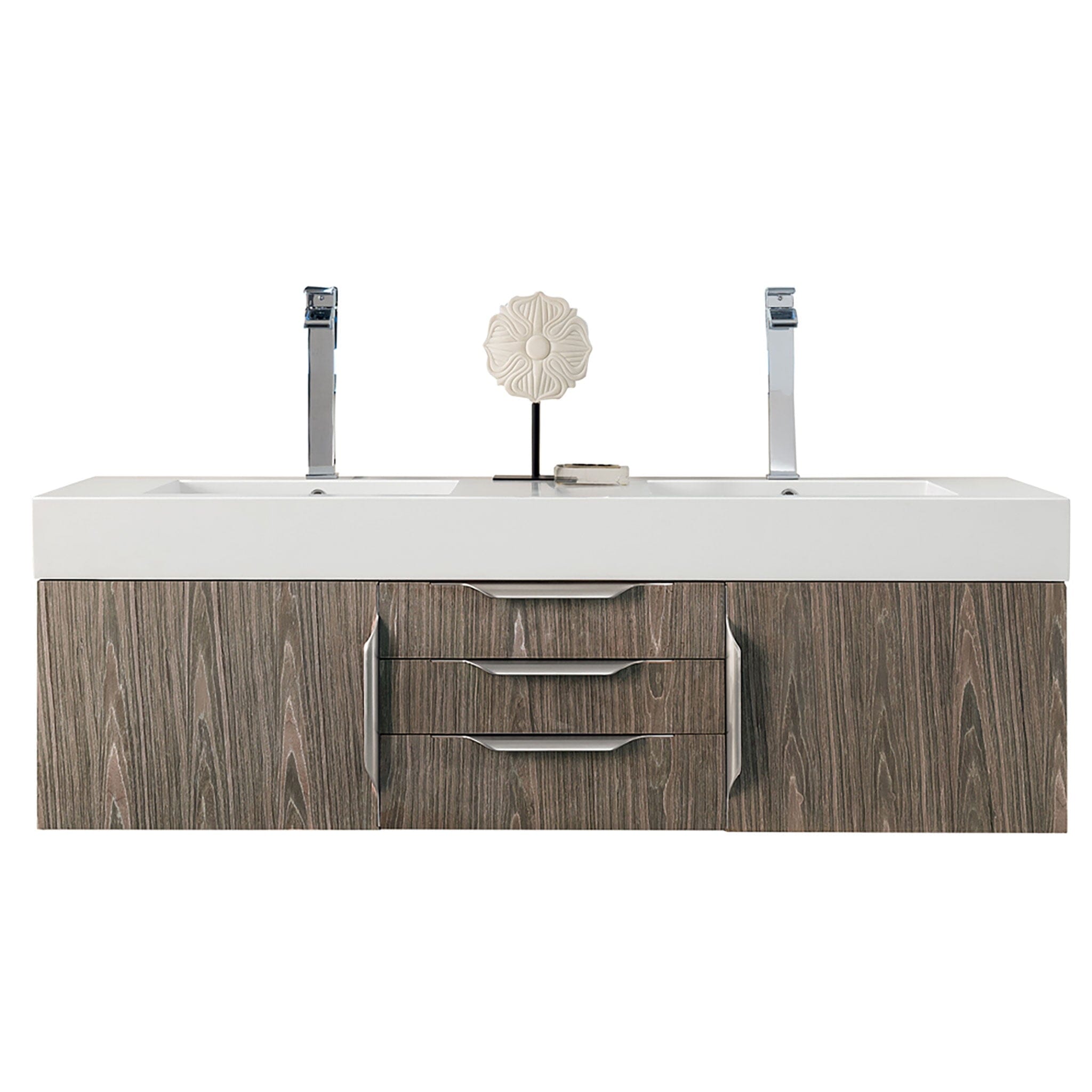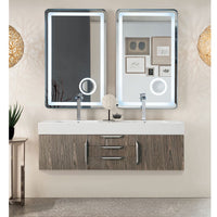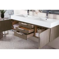 59" Mercer Island Double Bathroom Vanity, Ash Gray and Glossy White Composite Stone Top