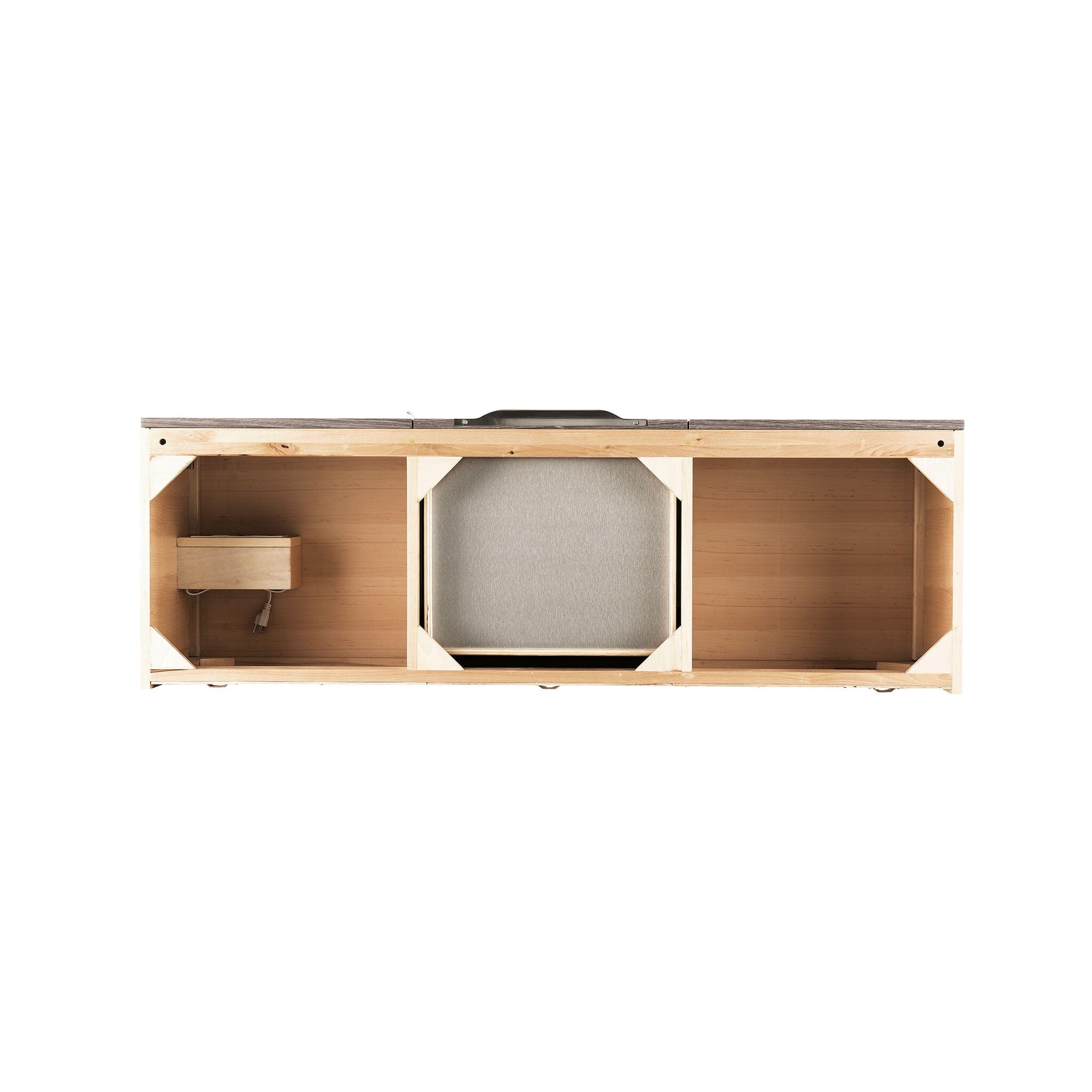 Drawer bottoms are lined with our signature brushed aluminum laminate.