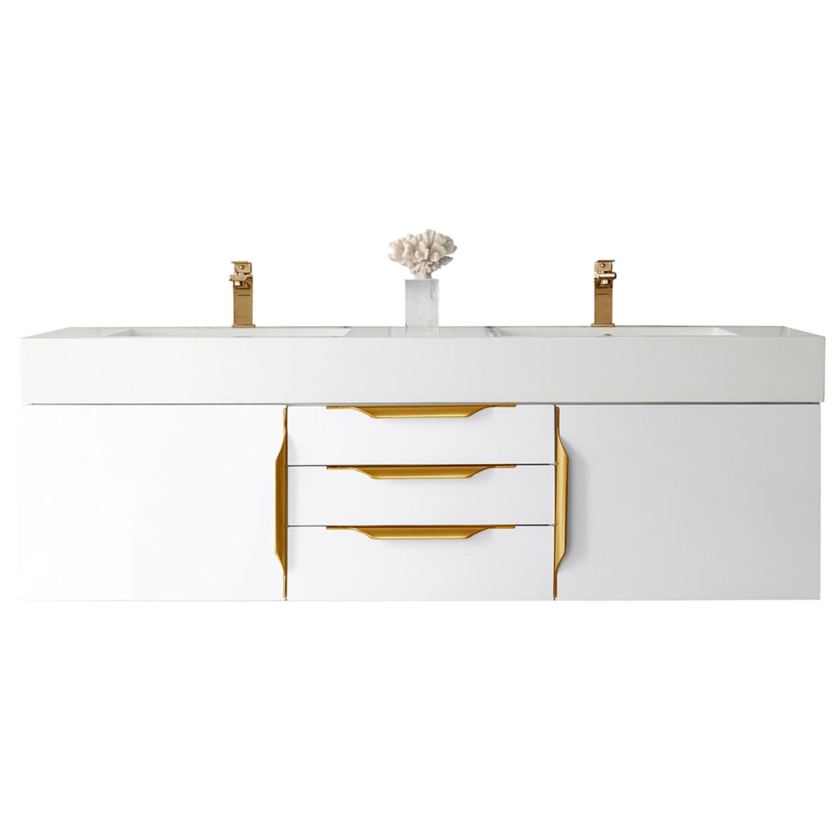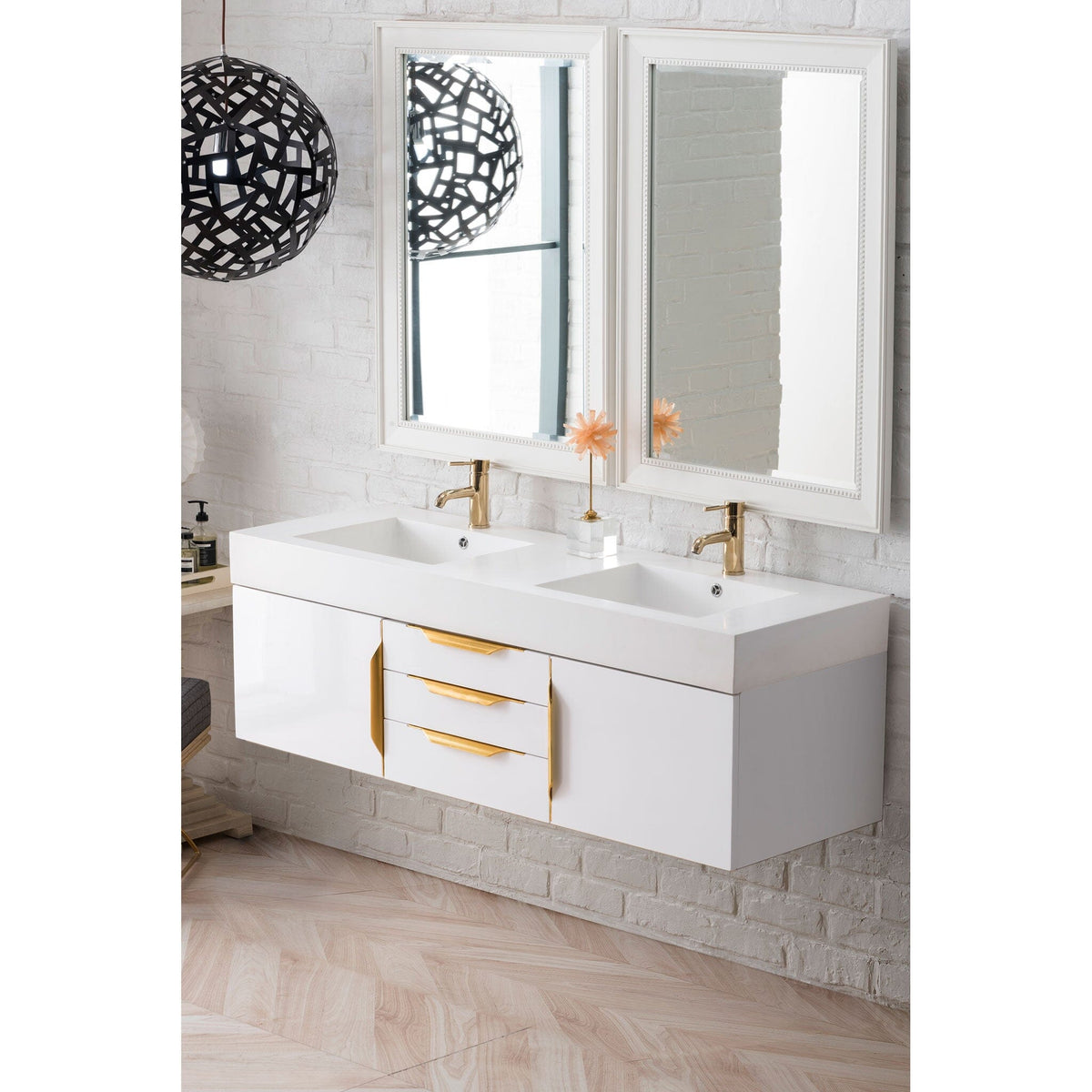 Double Bathroom Vanity59" Mercer Island Double Bathroom Vanity, Glossy White w/ Radiant Gold and Glossy White Composite Stone Top