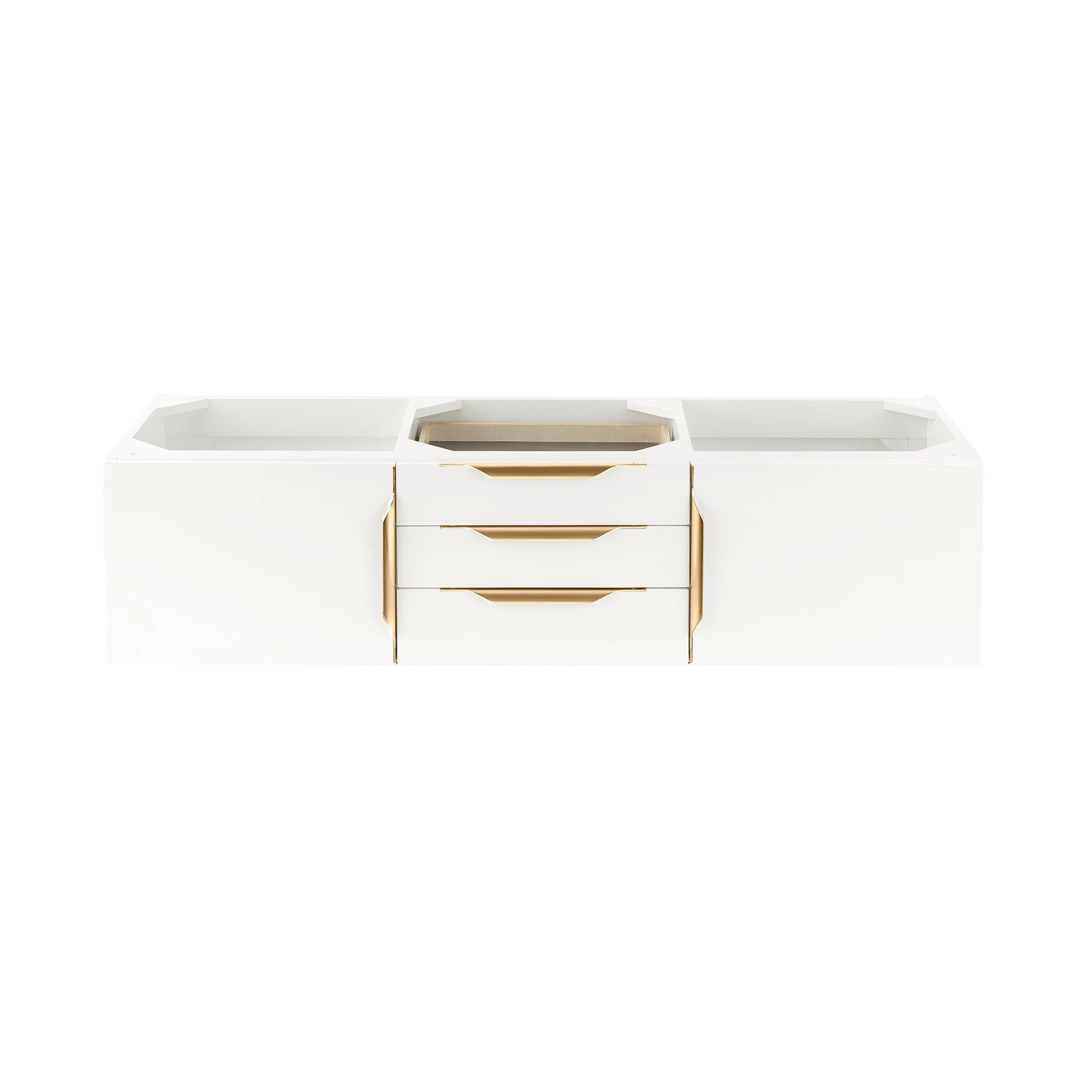 59" Mercer Island Double Bathroom Vanity, Glossy White w/ Radiant Gold and Glossy White Composite Stone Top