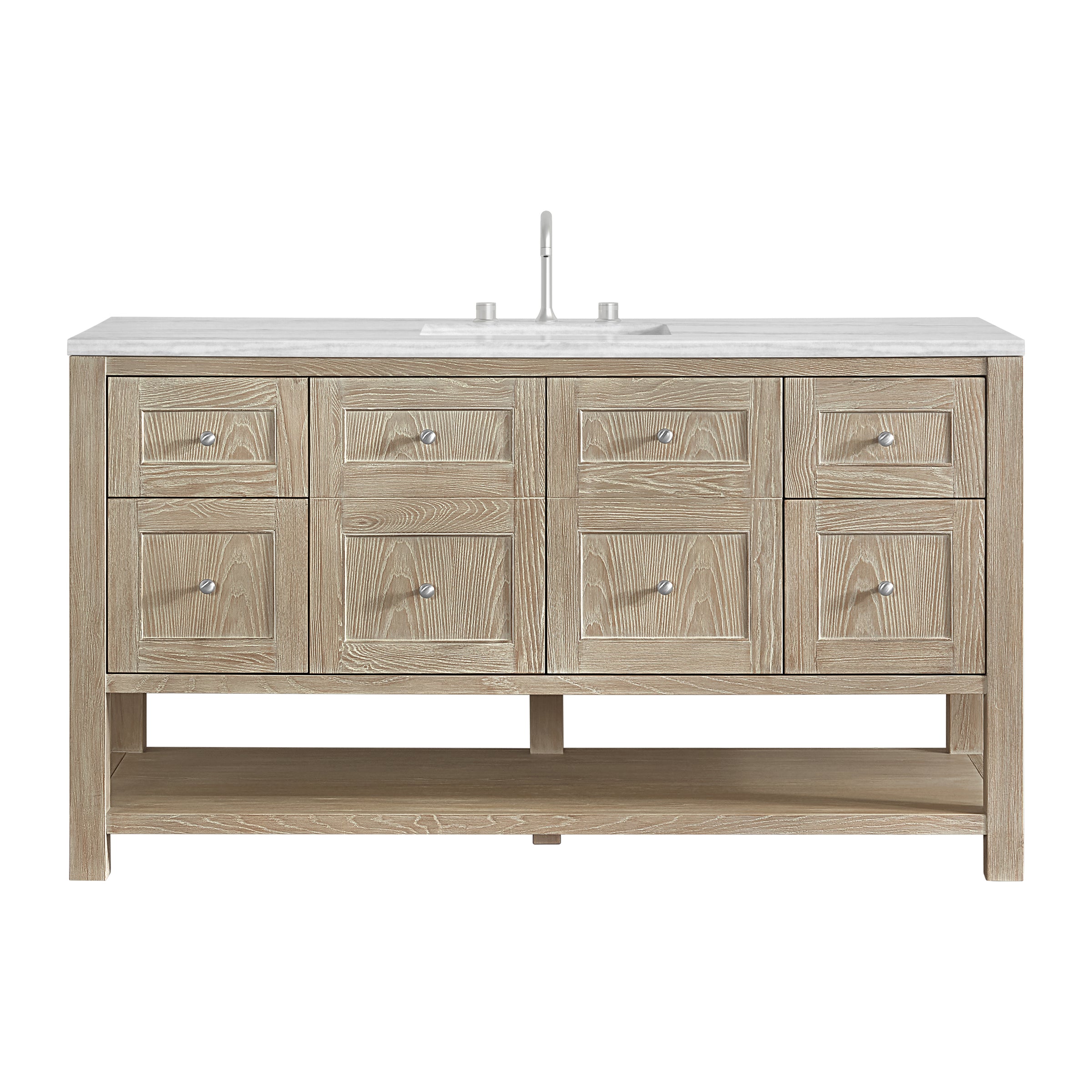 60" Breckenridge Single Vanity, Whitewashed Oak with Arctic Fall Top