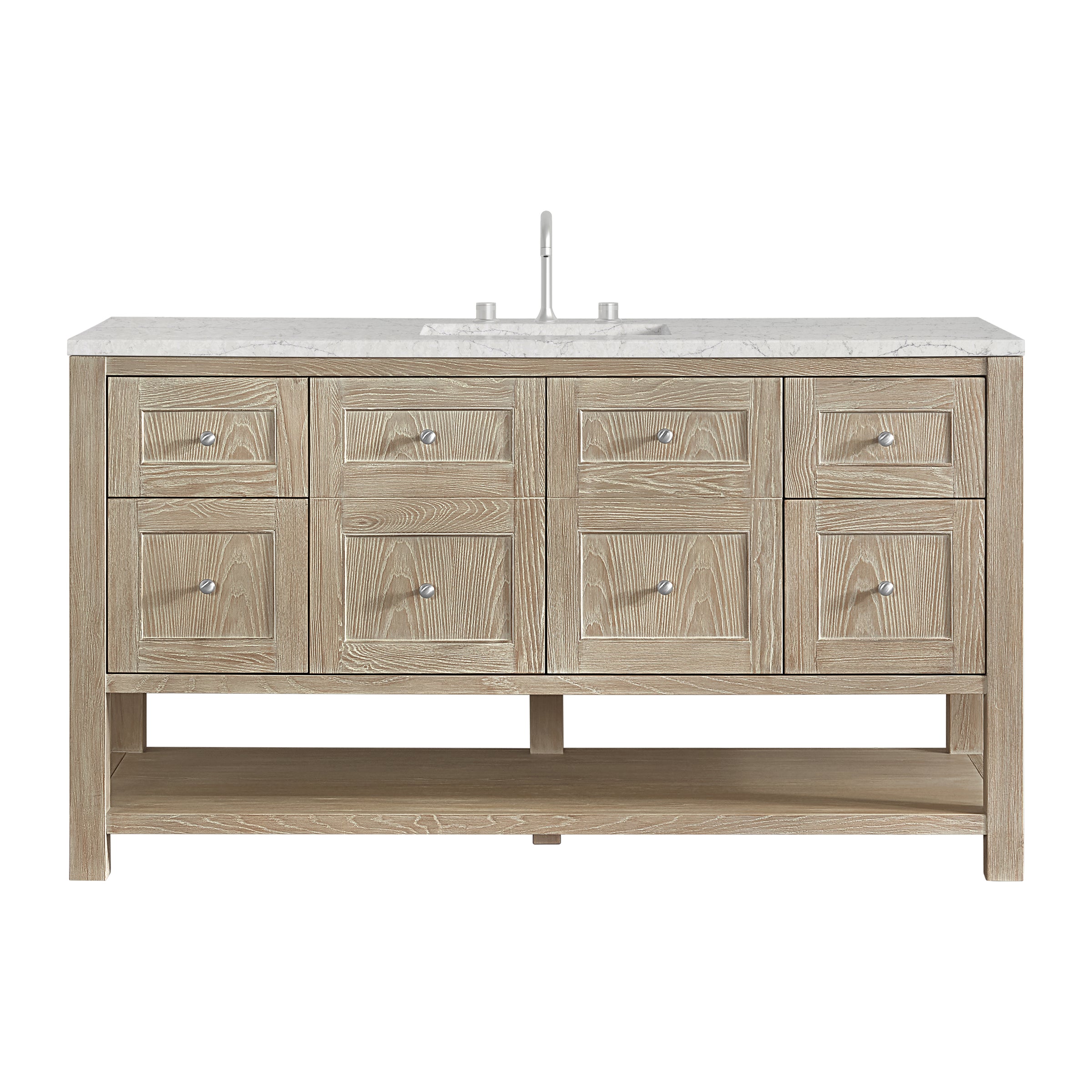 60" Breckenridge Single Vanity, Whitewashed Oak with Eternal Jasmine Pearl Top