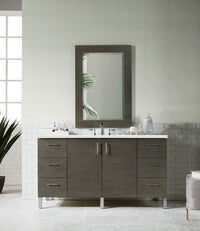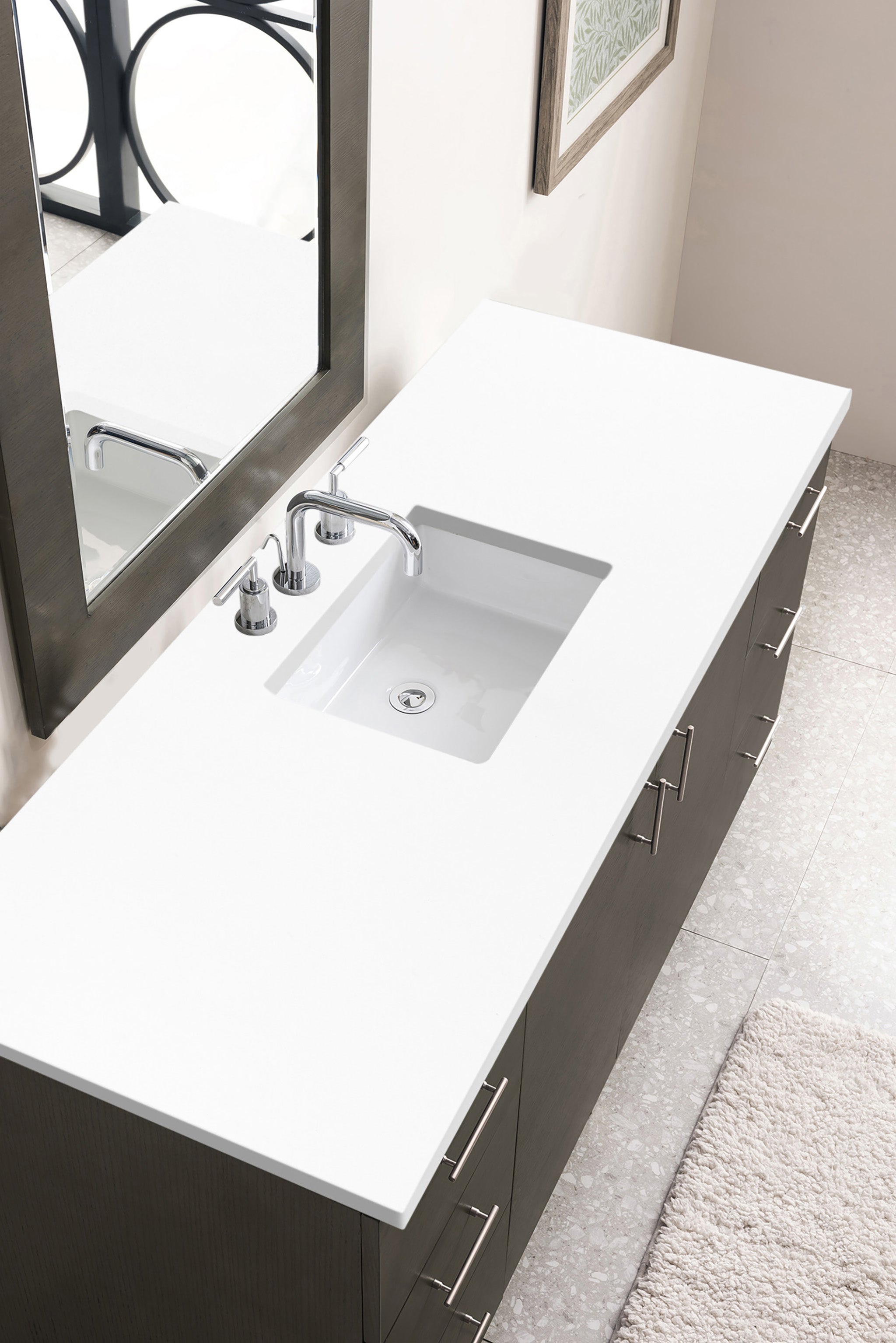 60" Metropolitan Single Bathroom Vanity, Silver Oak with White Zeus Top