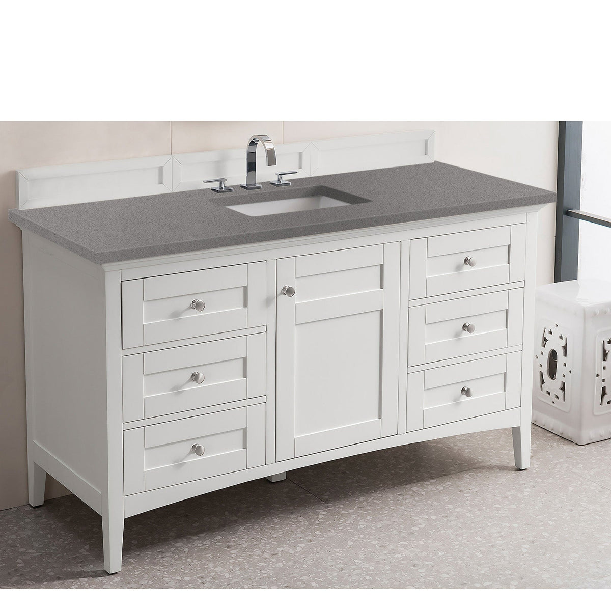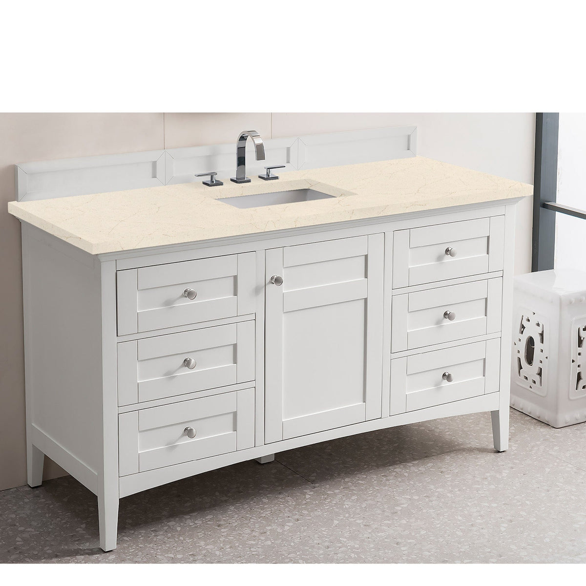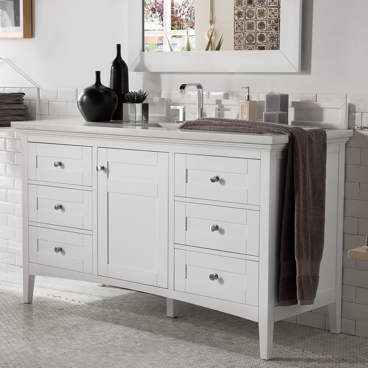 60" Palisades Single Bathroom Vanity, Bright White