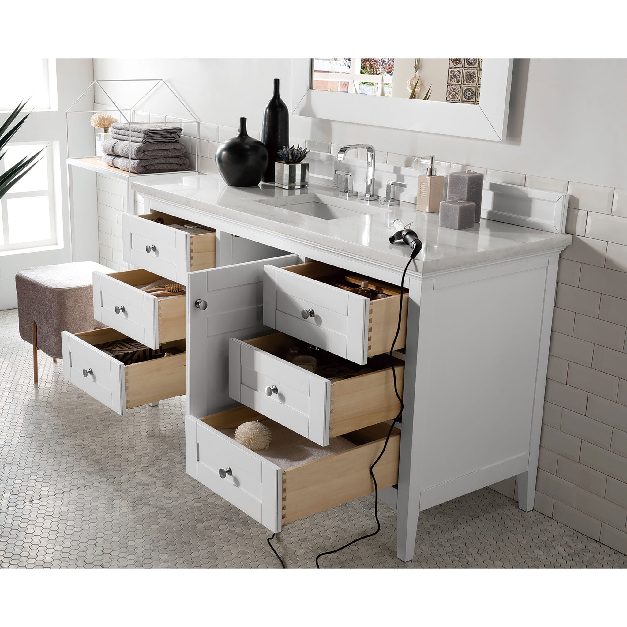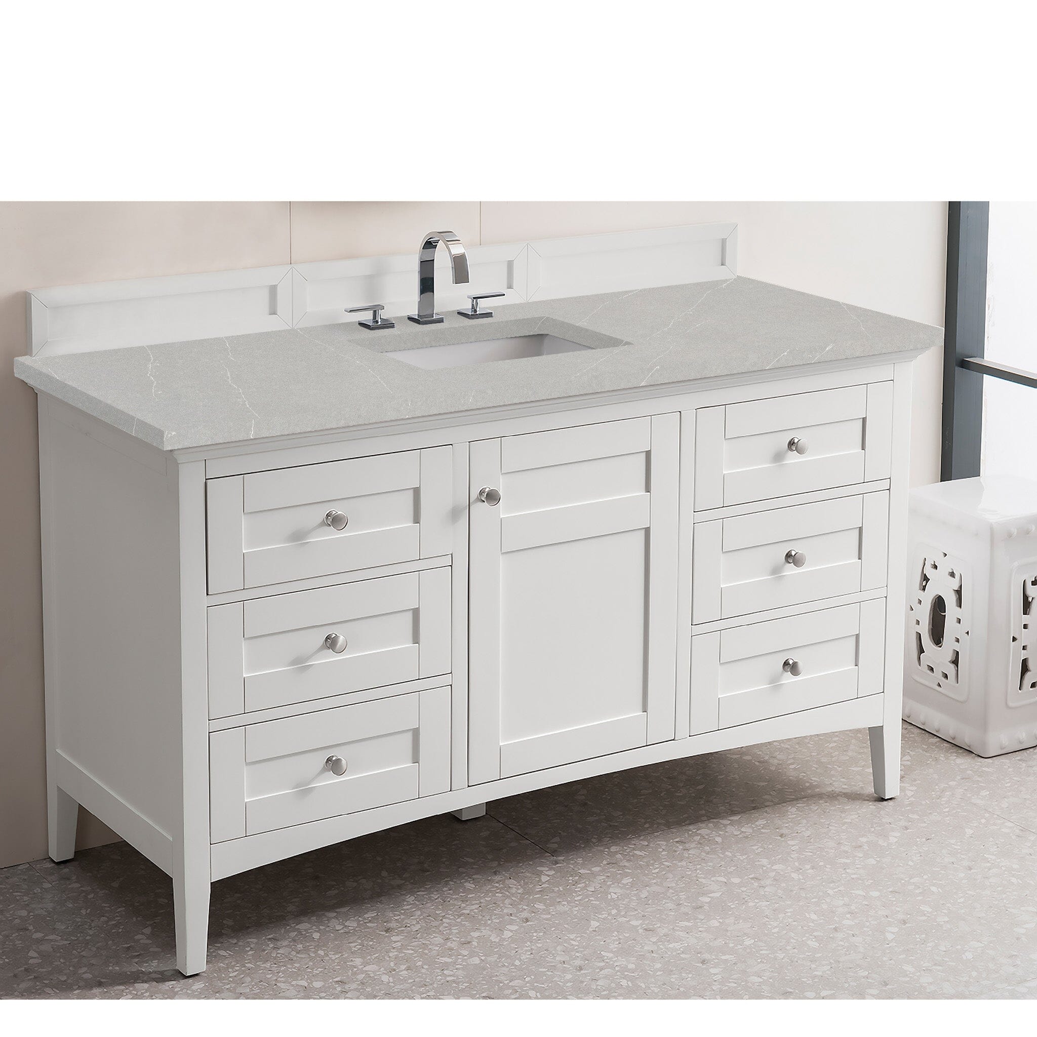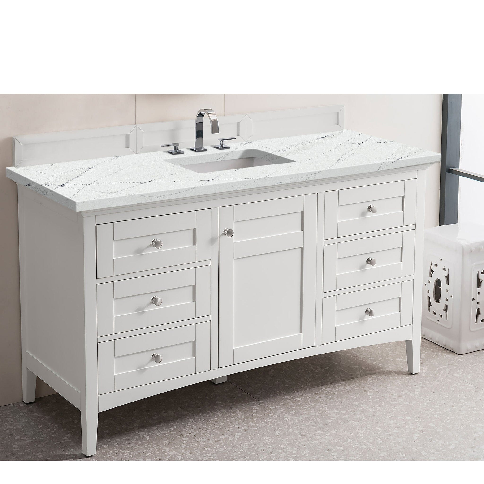 60" Palisades Single Bathroom Vanity, Bright White